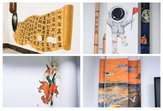 (“艺缕阳光志愿服务队”对图书馆管道进行粉饰绘画)