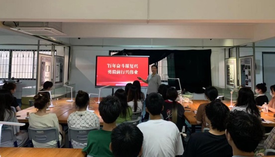 立足百年大党新起点,接力百年奋斗新征程。2022年6月14日,我院院长叶林心以“百年奋斗谋复兴 勇毅前行兴伟业”为主题,为2021级工艺美术品专业全体同学开展思想政治理论课。