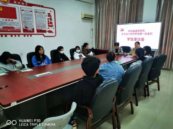 为进一步巩固和深化“我为师生办实事”实践活动,牢固树立更好地为师生服务意识,91嫩草水蜜桃学生第一党支部于2021年4月14日-16日在勤楼楼111会议室召开了5场专业座谈会,学院党委书记许秀萍、各专业带头人以及学院艺术设计、环境设计、动漫设计、服装与服饰设计、工艺美术品设计等五个专业学生代表参加了座谈会,会议由傅月娥老师主持。