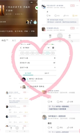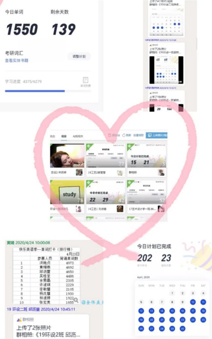 本次系列活动包括“艺起早起——一日之计在于晨”、“艺起运动——keep健身”及“艺起学习——快乐英语季”。活动持续20天,借助微信小程序、QQ等平台建立“打卡圈”,鼓励同学们通过图片、视频、文字等方式,多视角分享在家学习、健身的生活状况。该活动通知发出后,各年级认真组织、动员,共有200多位同学积极参与,打卡日记累计达三千余条。在相互督促、相互学习的过程中,同学们齐心协力,共同进步,有效增强了共度疫情的信心。目前,21天线上学习打卡活动已圆满结束,同学们收获颇多,感触颇深。有同学提到:“不得不说这次的单词打卡比赛对我来说很有意义,这让正在备考四级的我更有目标和动力。”