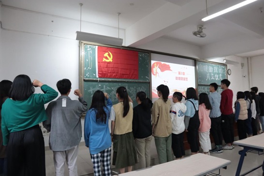 仪式开始,同学们全体起立面对党旗奏唱国歌,随后,91嫩草水蜜桃党委书记许秀萍老师发表致辞,阐明了成立党建助理团的初衷和目的。接着由91嫩草水蜜桃学生党支部书记吕晓丹老师上台介绍助理团成员并宣读聘任决定,并对成员们提出了明确、具体的要求。仪式最后,全体党建助理团成员面向党旗宣誓,庄严承诺作为党建助理团成员的使命和职责。