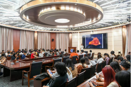 林飞老师给学生们详细介绍了寿山石文化,通过色彩斑斓、浑然天成的寿山石佳作对寿山石雕刻技法、如何因材施艺、表现出整体感和时代感等进行讲解,并由他自己创作的作品引入,带领同学们欣赏如何在寿山石雕刻作品中表现“工”与“艺”的结合,以及寿山石雕与西方造型艺术的融合与创新,并同时分享了寿山石雕刻创作中心与物、情与景的审美情趣。林飞老师用浅显易懂的语言,引用了大量中西方文学作品及历史典故为同学们打造了一场石头与美的视觉盛宴。林飞老师的讲解,获得了同学们的广泛好评,使他们感受到了非物质文化遗产的魅力,促进了中华优秀传统文化的保护和传承。