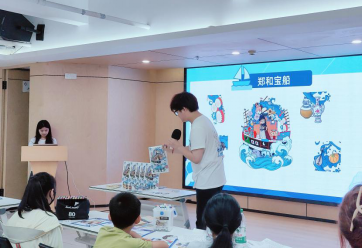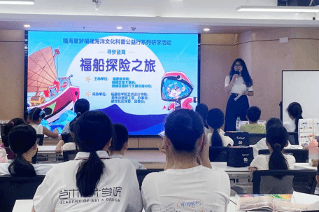 我院学生陈红羽为孩子们讲解实践队成员化身为福建海洋文化的传播者,为孩子们带来了生动有趣的海洋文化知识讲解。从幽默风趣的研学故事到丰富多彩的福船制作工艺,再到别开生面的福建航海文化,每一个知识点都让孩子们听得津津有味。接着,实践队与孩子们一起,围绕着精心设计的研学任务卡展开讨论与实践。连数字搭建船帆、破解福船上的十二生肖密码、设计福船船部色彩、模拟航海路线规划、扮演碗礁一号外销瓷修复师......每一项任务都考验着孩子们的团队协作能力与创新思维。