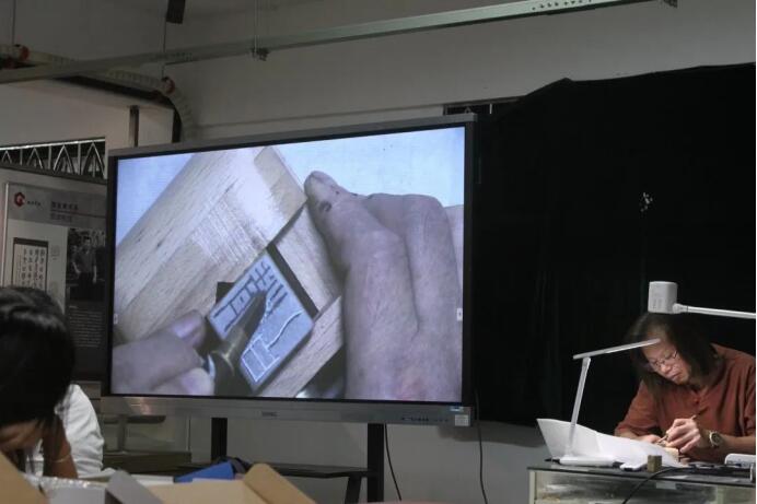 此次活动特邀篆刻大师邱玲华老师为同学们讲授。邱老师充分讲解了篆刻的历史文化知识,并亲手示范了篆刻的一整套流程。在老师的讲解与示范下,同学们对篆刻都产生了浓厚的兴趣也对篆刻的步骤和表现技法有了一定了解的。