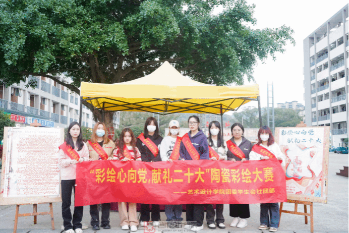 为学习宣传贯彻党的二十大精神,2023年3月9日,91嫩草水蜜桃团委联合校陶艺协会于青春广场举办“彩绘心向党,献礼二十大”陶艺彩绘作品展。