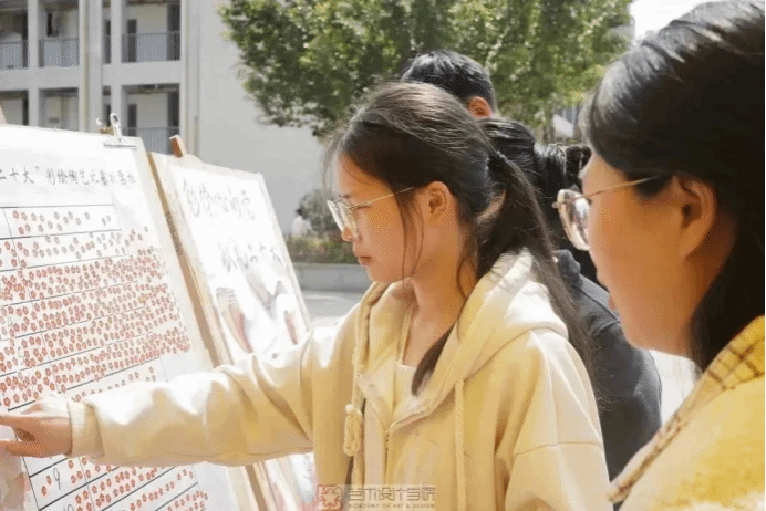 本次展览共展出20件优秀陶瓷彩绘作品,作品以二十大为主题,融入春意,集思想性、艺术性、观赏性、时代性于一体,各具特色,展现出新时代大学生积极进取、昂扬向上的精神风貌和文化底蕴。师生频频驻足欣赏,时时发出赞叹,为精彩作品投票点赞。