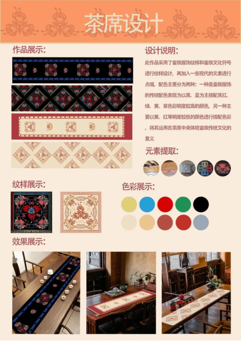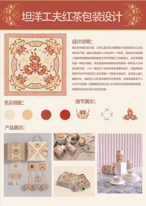 实践队学生设计的畲族文化元素和地方茶文化结合的设计作品