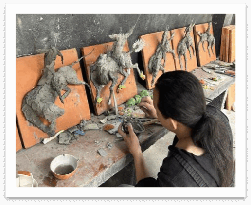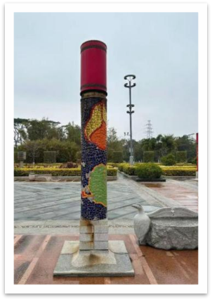 在调研过程中,我发现剪瓷雕是一种利用碎瓷片在泥塑上以上色的工艺,我联想到在之前的旅行过程中,泉州中国闽台缘博物馆门前的台柱和江西景德镇“瓷宫”是利用瓷片进行平面的装饰,这二者间在冥冥之中也是一种文化共鸣。