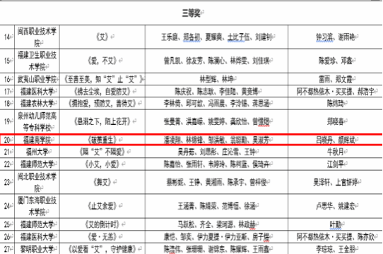 近日,由福建省卫生健康委员会、福建省教育厅主办的“第二届福建省大学生防艾主题短视频征集大赛”公布获奖名单,由我院吕晓丹、颜辉斌两位老师指导,潘凌翔、林锦锋、邹洪敏、翁聪勤、吴淑芳等同学共同完成的作品《破茧重生》荣获大赛三等奖。