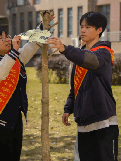 师生们在后勤园林师傅的帮助下学习了植树的要点及相关知识。随后,大家便分工协作,挥锄挖土、扶树填坑、浇水培土,并以年级为单位挂牌,共同为校园增添新绿。参加植树的学生周惠雪说:“在植树中,我感受自然的美丽,也体验到劳动的快乐,今后我会继续以实际行动为建设绿色校园贡献青春力量。”学生郑婉琼说:“与同学朋友们共同栽下人生的第一棵树,心中充满成就感与自豪感。期待种下的树苗茁壮成长,成为校园中一道美丽的风景线,共同见证我们的成长。