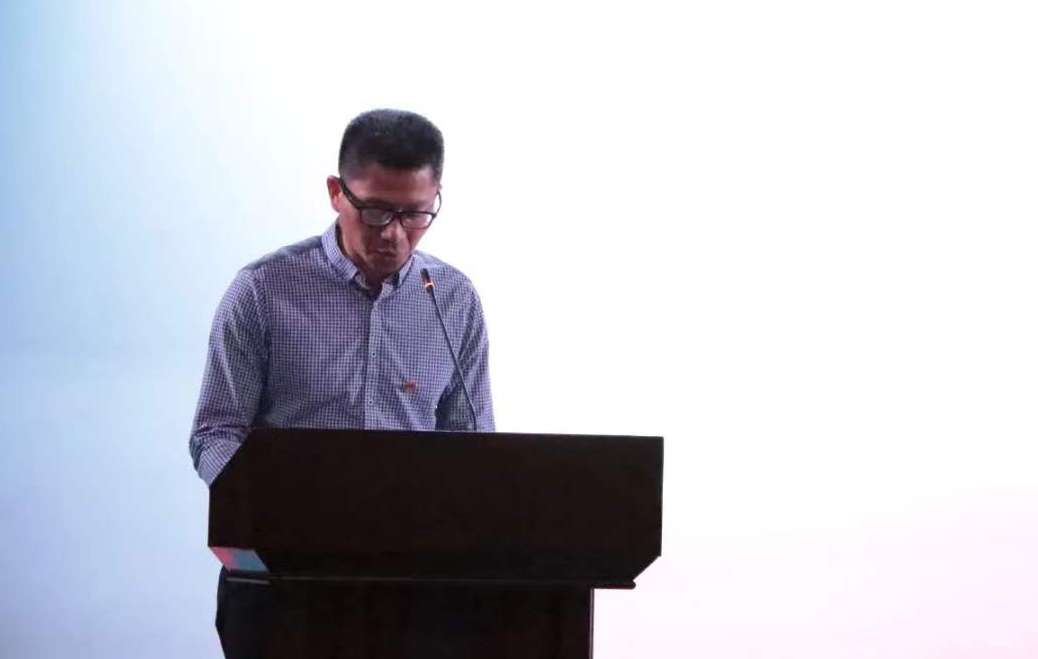 院党委副书记郭锦辉老师上台进行发言讲话,他首先代表院党委向广大青年学生致以节日问候,向受表彰的先进集体及个人表示祝贺,同时也对广大青年团员提出三点希望:一、坚定信念跟党走,把报效祖国、服务人民作为自己的毕生追求和努力方向;二、坚定爱国情,不负青春立宏志,勇做时代前列的奋进者、开拓者;三、珍惜好时光,练就本领担大任,在积极实践,彰显青春智慧、绽放青春风采。