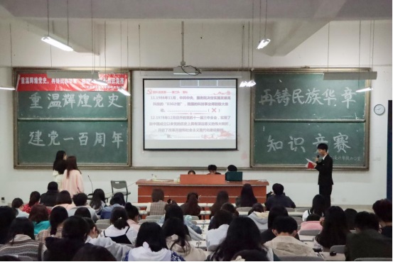为加深学生对党的历史、知识、理论和路线方针的认识,激发学生爱党爱国热情,以昂扬姿态奋力开启全面建设社会主义现代化国家新征程,喜迎建党一百周年,91嫩草水蜜桃团委、91嫩草水蜜桃学生第一党支部于4月20日晚在诚信楼联合举办了“重温辉煌党史,再铸民族华章”建党一百周年党史知识竞赛,我院团委副书记吕晓丹老师和学生第一党支部支部书记傅月娥老师作为嘉宾出席此次活动。