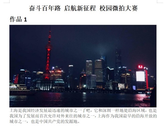 此次大赛受到学院领导的高度重视,为选送优秀作品参赛,学院精心组织,广泛动员学生积极创作,通过学生的视角将“坚定理想信念、厚植爱国主义情怀、培养奋斗精神”等内容有机融入到微拍大赛活动中,不仅充分展现了新时代我院在教育事业上的新作为、新进展,也展示出我院学子的良好精神面貌。