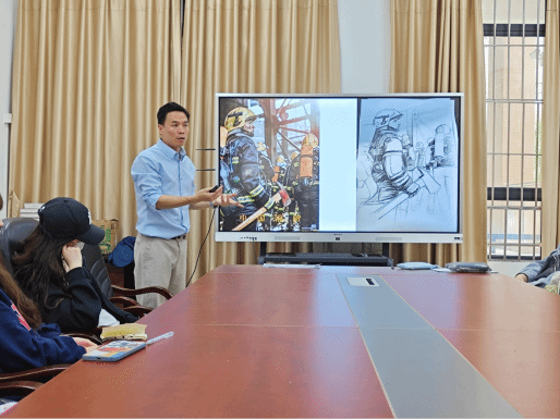 在五一国际劳动节来临之际,为进一步弘扬劳动精神,4月22日中午,我院于勤敏楼111会议室举办绘画工作坊——“艺术为人民”劳动节主题创作活动,由副院长周海彬进行现场指导,启发大家进一步完善创作作品。