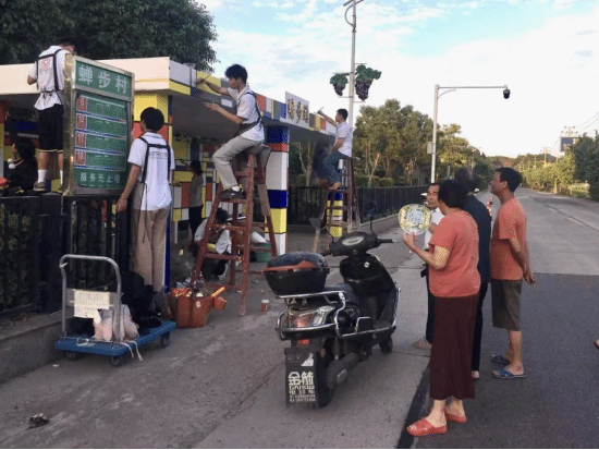 村民驻足静待公交站“换装”