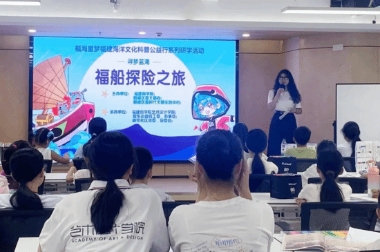 据悉,“福海童梦——福建海洋文化科普公益行”实践队,于2024年暑期前往福建省福州市开展关于福建海洋文化儿童美育课程的社会调研。他们走进福船博物馆,永德会馆和古田会馆等等,感受其中古船的巍峨、海上丝绸之路的辉煌、福建海洋文化的深邃与广博。在这暑期两个月的时间里,实践小队总结了诸多理论知识,尽心打磨福建海洋文化美育文创,更是与社区展开合作,投身于对福建海洋文化的创新传承。