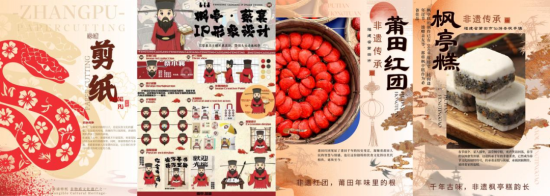依托艺术设计专业优势,团队制作《探闽年 赏非遗》系列短视频,以动态影像展现非遗技艺细节;设计非遗主题海报及文创作品,将剪纸纹样、鱼子灯造型等元素转化为现代视觉语言。相关成果通过社交媒体平台传播,引发公众对非遗文化的关注与讨论,部分作品获地方文旅部门转载推广。