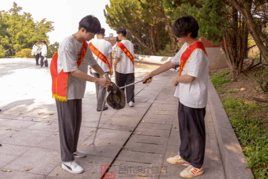 图2 同学们对革命烈士纪念碑周边环境进行清扫