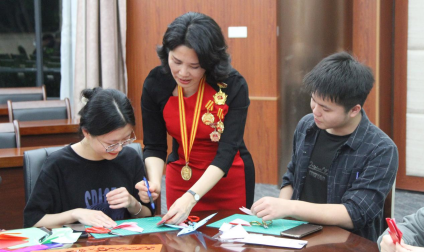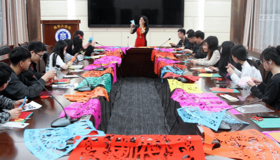 福商学子认真学习剪纸技艺