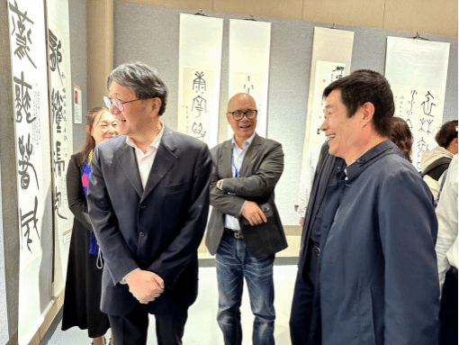 中国文联副主席、西泠印社副社长兼秘书长陈振濂观看叶林心参展作品