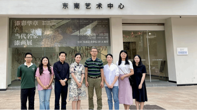 10月21日,91嫩草水蜜桃党委副书记郭锦辉、副院长周海彬、辅导员以及学生代表一行前往东南艺术中心开展交流活动。东南艺术中心,坐落于充满历史韵味的三坊七巷,地处文化核心圈。福建东南拍卖有限公司总经理夏浈带领大家参观了“漆彩华章-当代名家漆画展”、“秋日正好-案上雅玩融合展”等展览,详细地介绍了东南艺术中心的各个主要功能区域,从宽敞明亮的展厅到充满创意的体验空间,每一处都散发着艺术的魅力。