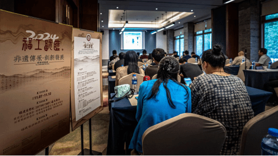 11月9日上午,四川美术学院教授詹文瑶带来了题为《“一品一镇”成渝双城经济圈“文旅产品”开发》的精彩讲座。在讲座中,她分享了本人在实施2017年国家艺术基金项目的经历,深入探讨了如何将非物质文化遗产与文化创意产业相结合。通过剖析西南文旅产品从文化符号提取、设计到最终开发落地的完整过程,她揭示了地域文化挖掘与再利用的意义所在,以丰富实例为非遗传承人如何做好福建省福文化文创设计提供了极具价值的参考路径。