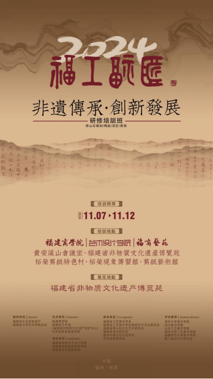 为了推进福建省非物质文化遗产保护事业的高质量发展,助力文化强省建设,2024年“福工福匠”非遗传承与创新发展研修班精细设计课程,助力非遗人才培养。研修班结合知识讲座、研讨交流、现场教学等多种方式进行,注重培训内容的前沿性、针对性和实用性,邀请了黄宝庆、庄南鹏、刘润福、陈秀梅、詹文瑶、陈耕、徐思民、李豫闽等省内外知名专家、学者和艺术家开展系列专题讲座,带领学员深入探讨非物质文化遗产的保护、传承与创新之路,在继往开来中谱写文化传承新篇章。