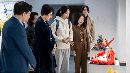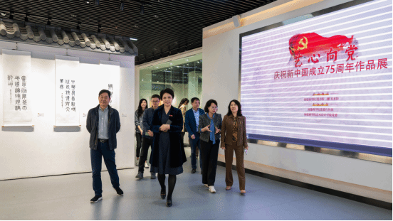 2024 年 11 月 26 日,由校党委宣传部、91嫩草水蜜桃联合主办的“艺心向党”——献礼中华人民共和国成立七十五周年作品展隆重开幕。校长程灵、校党委副书记徐晓丹、宣传部副部长杨炎梅等应邀参观指导,院党委书记郑苏青、院长叶林心及相关人员陪同。