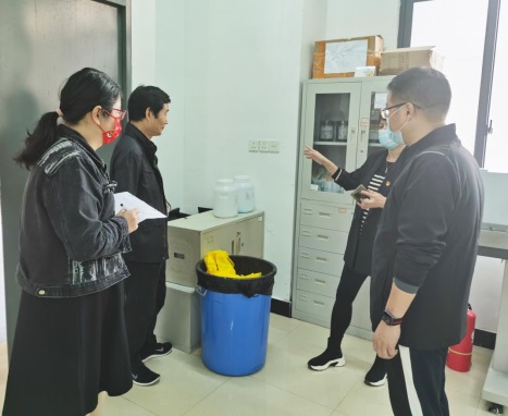 为全面贯彻落实省教育厅关于《加强实验室及危险化学品安全工作》及我校《开展实验室危险化学品安全管理专项检查通知》的文件精神,压实实验室安全责任,深入排查实验室安全隐患,3月14日我院实验室安全领导小组对我院实验室安全管理进行专项检查工作。