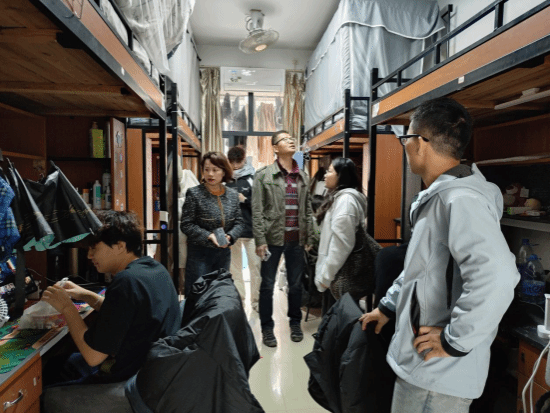 走访过程中,老师们与同学们亲切交流,关心关注同学们的生活状况和学业进展,耐心倾听同学们的心声与需求,叮嘱同学们在备考期间,应注重劳逸结合,合理规划复习时间,保证身心健康,以最佳状态迎接考试。同时,还特别提醒同学们要增强自我保护意识,注意宿舍消防安全、个人财物安全,防范网络诈骗等安全隐患,共同创建安全稳定的校园环境。院领导一行还深入宿舍排查安全隐患,对寒假前宿舍安全卫生状况和公共设施环境进行摸排检查。