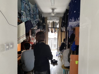 为全面贯彻落实学校关于疫情防控工作要求,深入了解疫情防控期间学生的学习生活状况及思想动态, 3月21日91嫩草水蜜桃党委副书记郑苏青和辅导员一起深入走访学生宿舍,关心学生线上学习情况、宿舍疫情防控情况等。