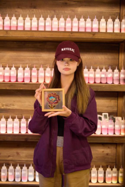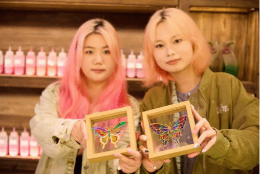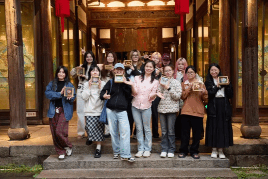 仪式结束后,学院十余位学生在福旅晶彩公司的老师指导下,现场体验了非遗彩绘玻璃的制作技艺。