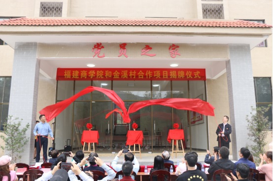 仪式上,刘剑津书记、赫广楠副县长等共同为 “党员之家”、“福艺栈”及 “福建商学院写生创作基地”揭牌。康文杰副校长在致辞中指出,希望“福艺栈”的开放使用,能够充分挖掘金溪村“红色、产业、生态”特色文化,激励师生不忘初心,继承和发扬革命先辈的优良传统,共同促进金溪村乡村振兴和高质量发展。