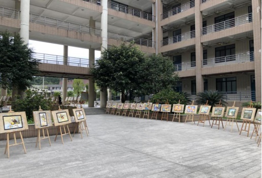 天空雾蒙蒙,像一位美丽的高贵的矜持的公主,舞动着她那神奇的面纱,送来阵阵凛冽的寒风。但这些都没法阻挡学生志愿者们的热情,他们一大早不辞辛劳的将这些作品整齐摆放在诚信楼广场。尽情地展示我院新生学子对校园的憧憬绘画。本次活动从2020级新生中选出了《设计色彩》课程100多幅优秀作品,每幅作品主题鲜明,内涵丰富,展示了同学们的基本绘画技巧以及创意思维,集思想性、艺术性、观赏性于一体。我校学子观赏、讨论,通过交流和学习,大大拓展了同学们的创新思维,并为我校的校园文化增添了一笔浓墨重彩。