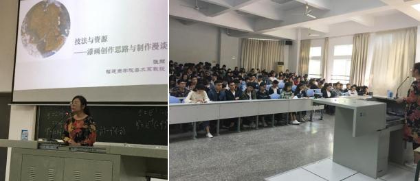 10月30日下午2点,福建商学院美术系张丽教授在闽江学院美术学院的阶梯报告厅作了题为《技法与资源——漆画创作思路与制作漫谈》的学术专题讲座,全校师生约400人听取了讲座。