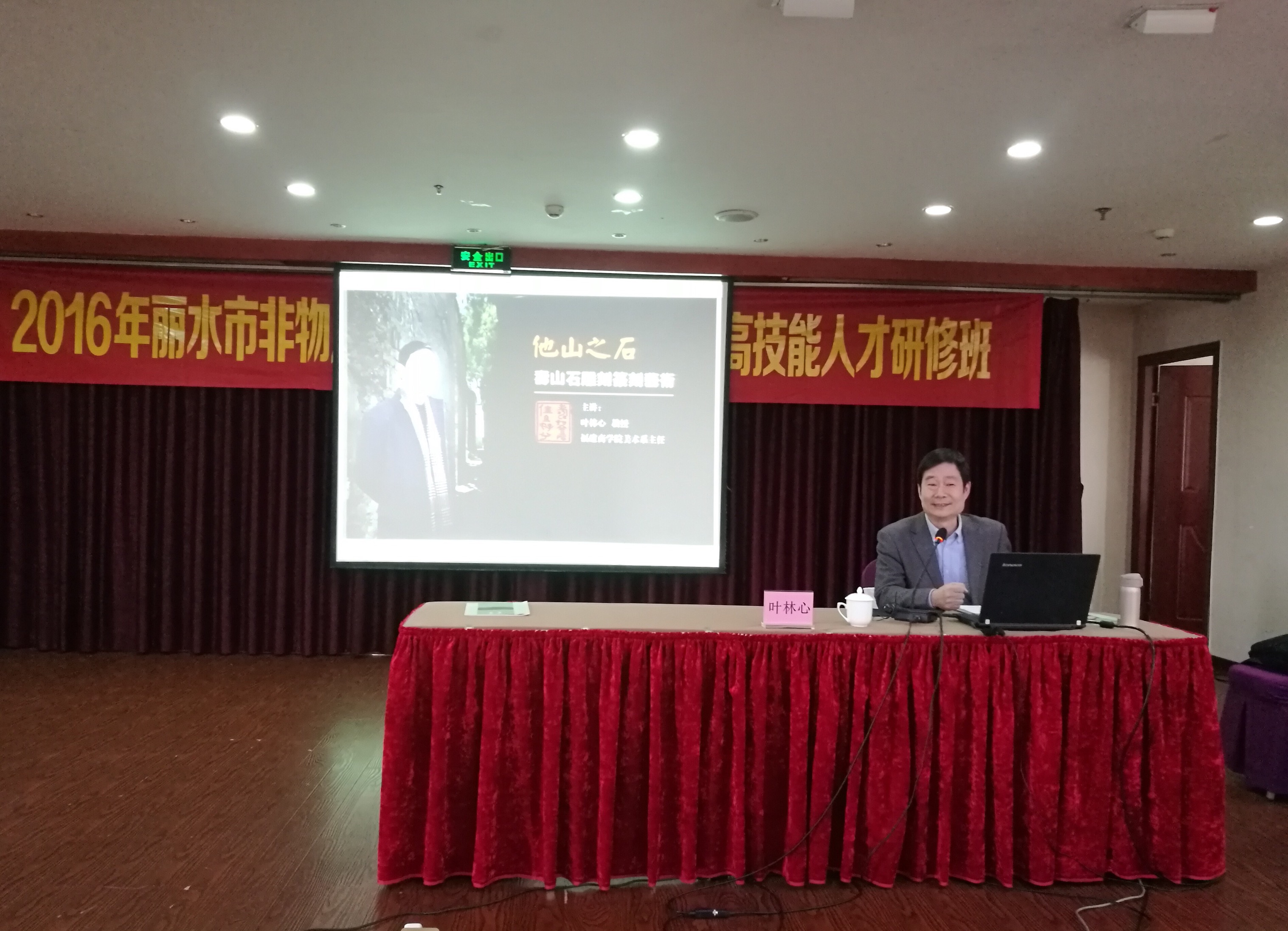 2016年11月2日下午,我校商业美术系主任叶林心教授应邀为“2016年丽水市非物质文化遗产(青田石雕)高技能人才研修班” 作《他山之石—寿山石雕刻篆刻艺术》主题讲座, 得到了在场学员的一致好评。