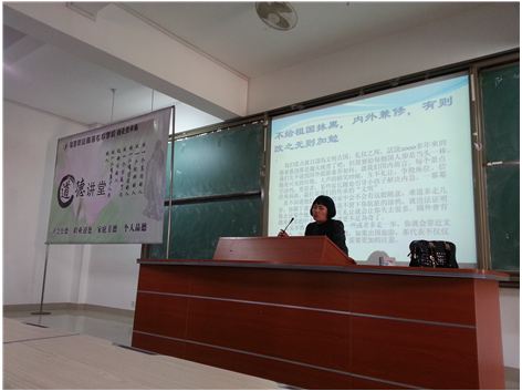 2013年10月29日,我校张信容教授在教学楼教室为我系学生开设道德讲堂,其目的是为了唤醒同学们规范言行的意识,从实践出发,从现在开始,从自身做起,以自己的文明言行做文明新风的带头人。