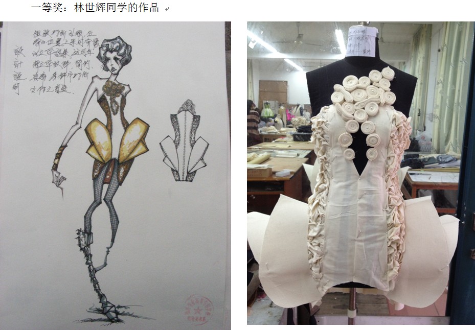 此次竞赛邀请了福建师范大学美术学院的服装系主任谢良教授担任评委,与商业美术系的陈雪清、季学琴、何晓琴老师共同对选手的各项作品进行评审,评出一等奖一名,二等奖二名,三等奖三名。经过激烈的竞争,最终2010级服装班的林世辉同学获得了一等奖。